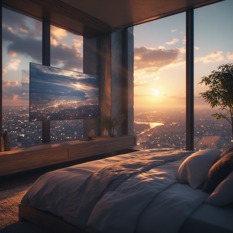 I look at the nearest screen to my bed, it comes to life and displays the local weather, travel and news channels. I have multiple partitionable screens all over the place, I can move around and my favorite programs will follow me, at my mearest whim I can add or remove channels and watch any program available on the massive server farms out there in ivspace (NOTE: infovision space, or just IV, pronounced as in the name Ivy, replaced television approx 30 years ago).